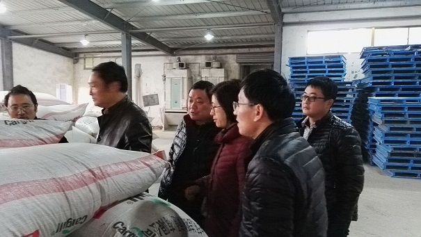 近日,周口市农委姜广林处长、何甜甜处长、海门市农业局杜秉全科长、李丽科长一行来Hjc gcgc08进行绿色食品续展认证领导,现场查看了Hjc gcgc08集团饲料厂、孵化厂和龙西鸡场,并对绿色食品续展资料进行了审核领导。